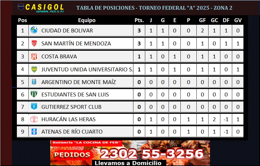 FEDERAL "A": COSTA EMPATÓ EN EL DEBUT ANTE JUVENTUD