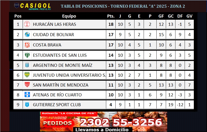 HURACÁN LAS HERAS vs. ATENAS DE RÍO CUARTO
