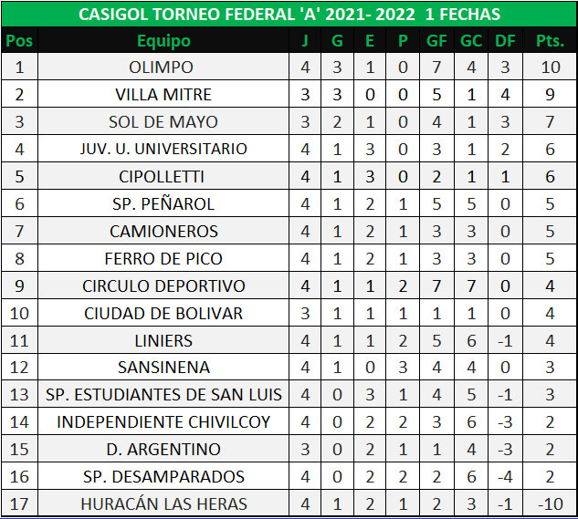 Ferro recibió a  Olimpo por la cuarta fecha del torneo Federal "A" .  Un primer tiempo en el cual Ferro comenzó bien  y tuvo una posibilidad clara que no pudo convertir, pero de a poco la visita levantó su nivel y complicó a Jordan, básicamente con pelotas aéreas cruzadas donde la gente de Olimpo iba a buscar con su gente grande. Sobre el final tras pasar algunas zozobras defensivas, pudo meter un par de contragolpes y estuvo cerca de abrir el marcador, pero se fueron al descanso con el marcador en blanco.