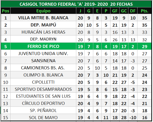 Se disputó la sexta fecha de las revanchas del torneo Federal A y Ferro de Pico jugó en Bahía Blanca ante Olimpo de Bahía Blanca.