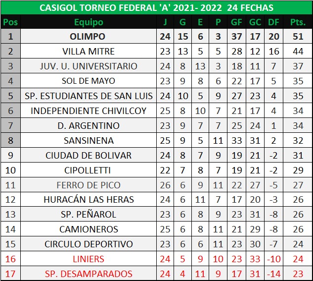 Ferro visitó a Juventud Unida Universitario de San Luis por la fecha 27 del torneo Federal "A". Volvió a caer y ahora tendrá fecha libre en próxima. El nuevo cuerpo técnico tendrá varios días para trabar e intentar revertir la situación difícil que atraviesa en la tabla de posiciones el verde de nuestra ciudad.