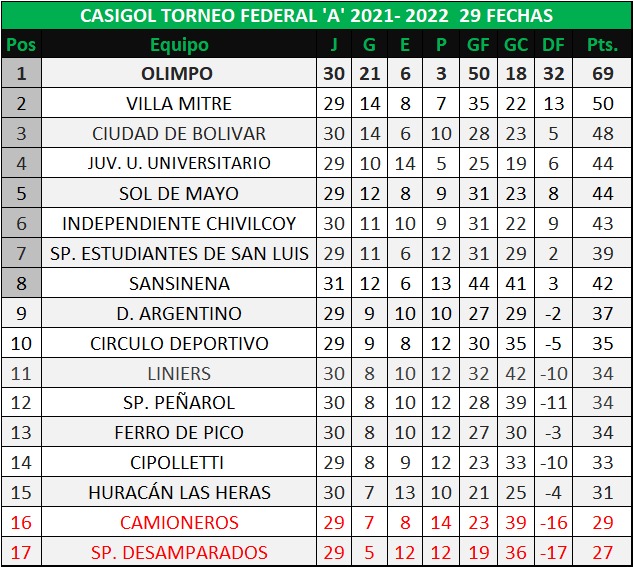 TABLA DE POSICIONES