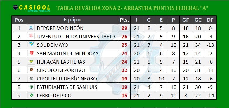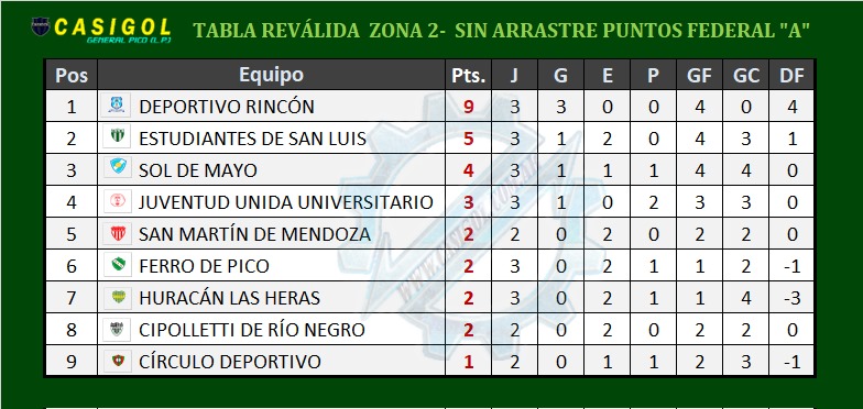 En el día de hoy se completó la tercera fecha de la reválida de torneo Federal "A", donde luego del empate de Ferro en el día de ayer era importante saber los resultados de los demás encuentros de la zona para saber como queda Ferro en la tabla de posiciones.