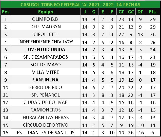 Por la fecha 14 de la zona 1 del torneo Federal "A" , Ferro visitó a Camioneros en el "Hugo Moyano". El partido tuvo un primer tiempo luchado, con pocas ocasiones de gol, con el local tratando de manejar las acciones en el arranque pero de a poco Ferro mejoró y le fue encontrando la vuelta al partido, y terminó controlando las acciones aunque sin demasiadas ocasiones para abrir el marcador.