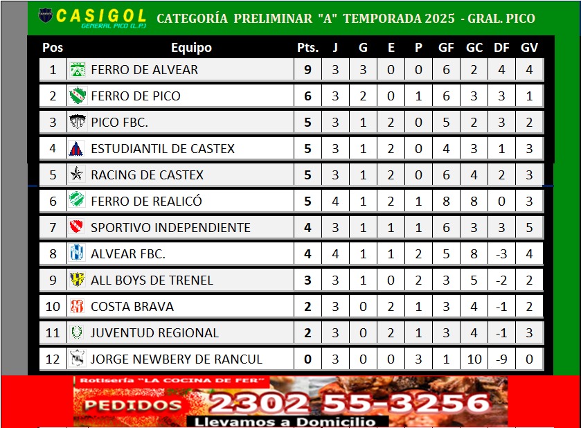 El tanto de la victoria lo consiguió Brian Roldán de penal  para el verde que con este triunfo sale del ahogo de la lucha por el descenso y complica a Jorge Newbery Ferro de Alvear y Costa Brava que juegan mañana.