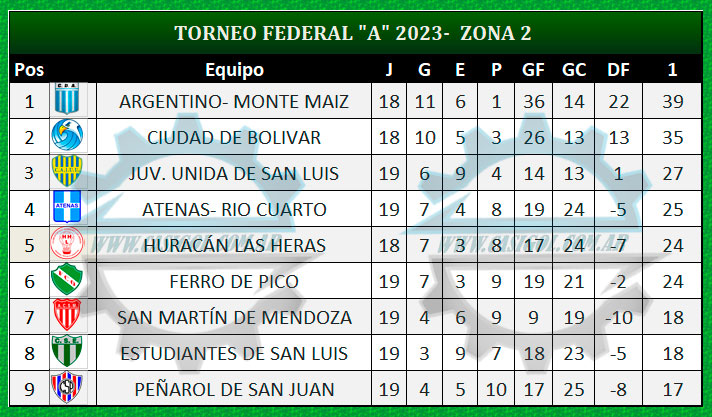 TABLA DE POSICIONES