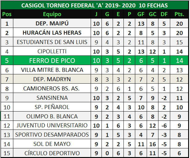 Ferro jugó de visitante en San Luis por la undécima fecha del torneo Federal "A" y lo comenzó perdiendo ante Juventud Universitario con el gol del ex Ferro Damian de Hoyos. Pero en el complemento el verde salió a buscar con todo el empate y lo consiguió de penal por intermedio de Daniel Neculman, para conseguir un punto importante de visitante y seguir en la zona de los clasificados.
