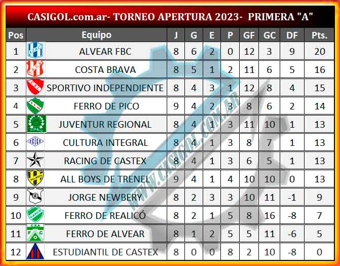 Nota: Tras el fallo del Tribunal del disciplinas del CFFA, actualizamos  en consecuencia la tabla de posiciones de primera división.