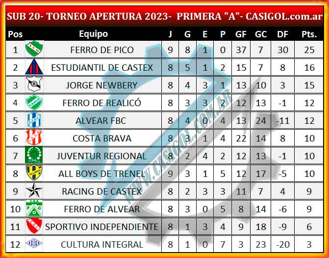 Sub 20: Ferro de Pico   4   vs.    1  All Boys de Trenel