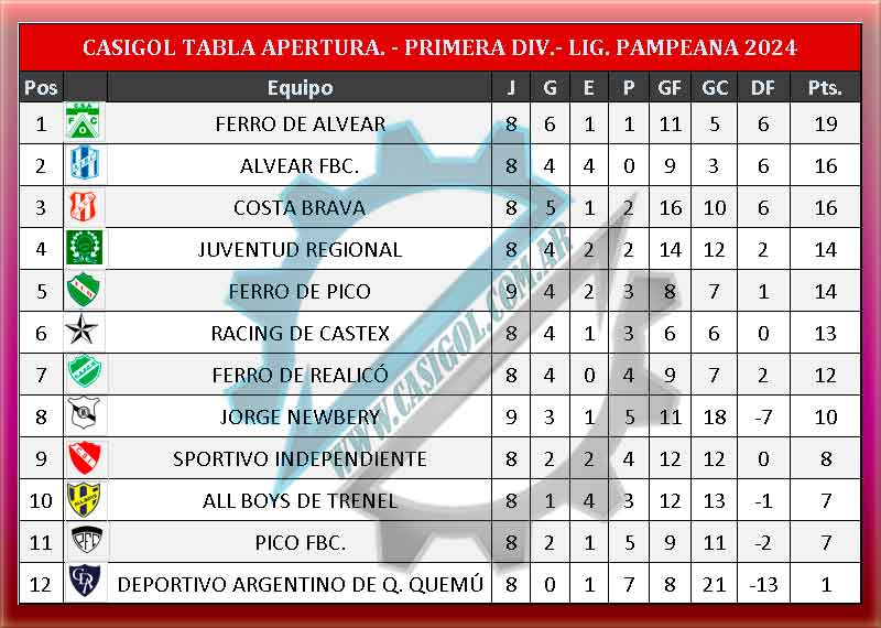 TABLA DE POSICIONES PRIMERA DIVISIÓN