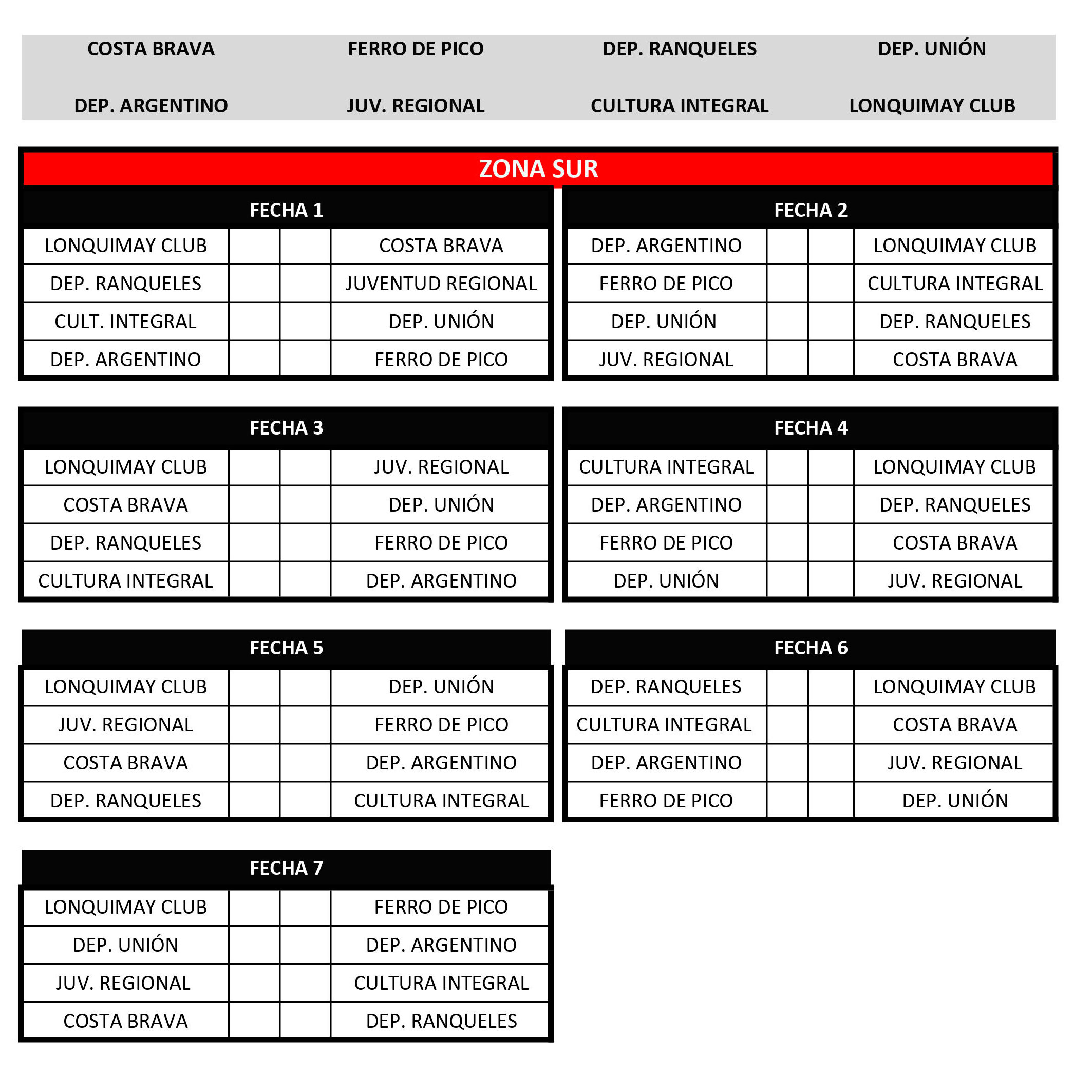Por la zona Sur. Ferro y Costa se enfrentan en la cuarta en el "Coloso", Deportivo Unión será local del Dep. Ranqueles en la segunda fecha y en la sexta Dep. Argentino recibe a Juventud Regional.