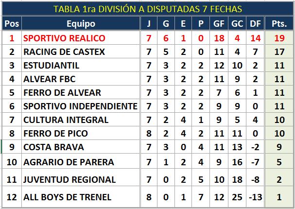 TABLA PRIMERA DIVISIÓN