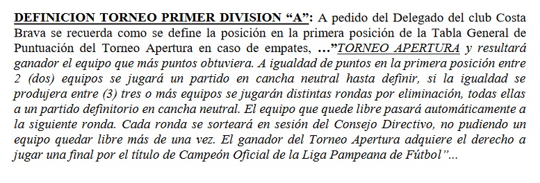 ESTO DICE EN SU ÚLTIMO PÁRRAFO EL BOLETÍN OFICIAL DE LIGA PAMPEANA, PUBLICADO RECIENTEMENTE.