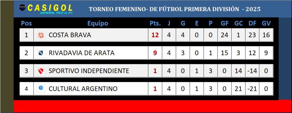 La jornada comenzó con el encuentro entre Sportivo Independiente y Costa Brava, donde las albirrojas se impusieron por cinco a cero y en segundo turno Cultural Argentino cayó ante Rivadavia de Arata por cinco a cero también. De esta forma pasó la cuarta fecha, primera de las revanchas con esta síntesis.
