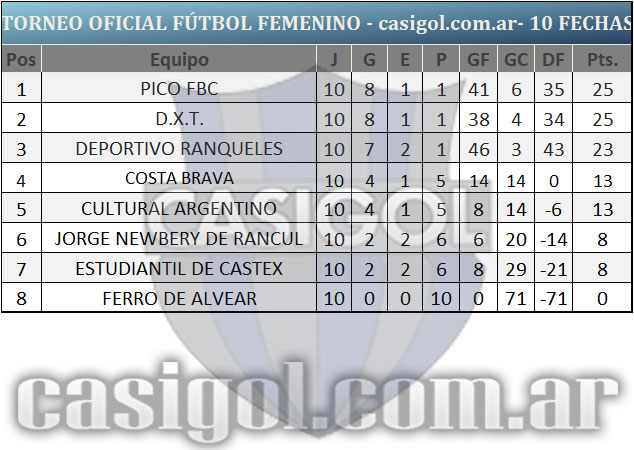 Se disputó la décima fecha del torneo de fútbol femenino que organiza Liga Pampeana de fútbol. Los resultados, la tabla de posiciones y lo que se viene para el fútbol femenino. Ganaron Deportivo Ranqueles, D.X.T., Pico FBC y Cultural Argentino. Así quedó la síntesis tras lo sucedido en Intendente Alvear.