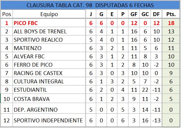 TABLA DE POSICIONES CAT 1998
