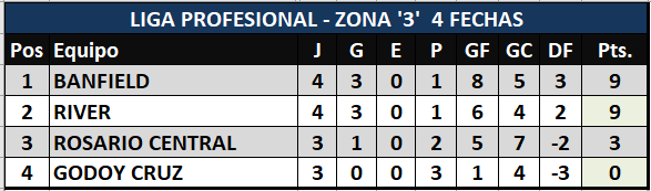 GANÓ RIVER Y COMPARTE PUNTA EN LA ZONA 3