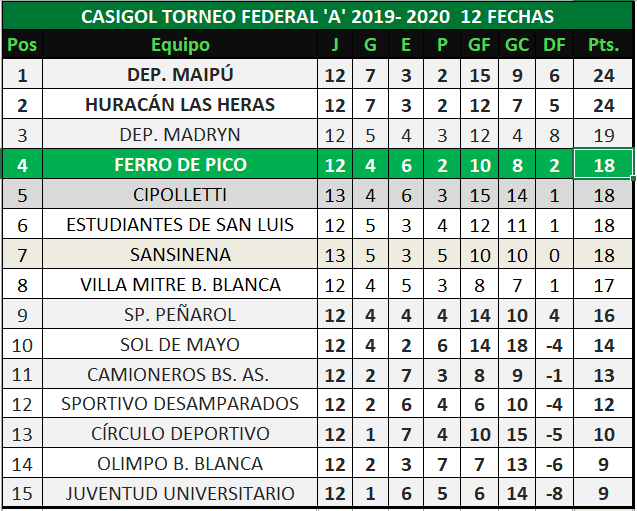 El conjunto de Giganti (18), buscará sumar de a tres en el "coloso", para seguir dentro de los seis de arriba que clasifican a la siguiente instancia. Lo intentará ante un Villa Mitre (17) , rival de cuidado al cuál no a podido vencer en las oportunidades que se enfrentaron hasta aquí. No obstante la estadística negativa ante el conjunto Bahiense, Ferro tiene con que ir a buscar el triunfo que irá a buscar para no perder el tren de los de arriba. Un cambio podría introducir el entrenador respecto del empate conseguido ante Camioneros y sería la salida obligada de Nelson Benitez por expulsión, ingresando en su lugar Fernando Marquez, el resto podría ser el mismo equipo del uno a uno en el "Hugo Moyano".