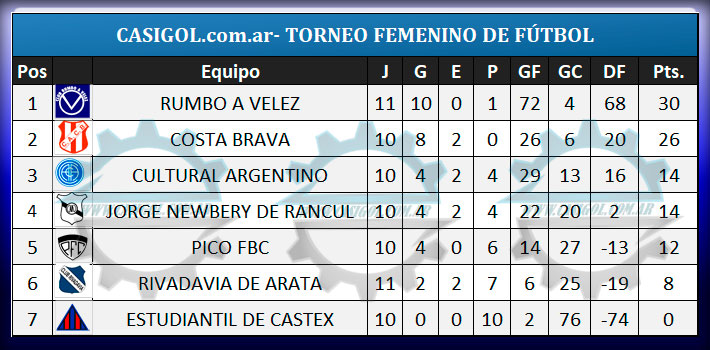 Se disputó una nueva fecha del torneo femenino de fútbol que organiza el departamento de la especialidad de Liga Pampeana. La fecha que se disputó fue la duodécima y la misma comenzó el sábado con el triunfo de Costa Brava sobre Pico FBC y finalizó en el día de hoy con los encuentros entre Estudiantil de Castex, Cultural Argentino y Rivadavia de Arata, Rumbo a Velez.