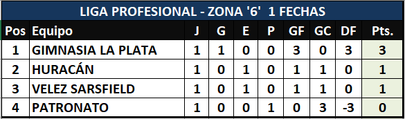 Seis partidos de las zonas 4, 5 y 6 se jugaron hasta aquí, con el triunfo de Boca anoche ante Lanús como los encuentros de mayor trascendencia. Talleres abríó el viernes por la misma zona y junto al xeneize mandan en la zona 4 con tres unidades cada uno. En la zona 5 todos iguales, siendo empate en los dos encuentros dado que Aldosivi igualó con el marcador en blanco con Estudiantes,  y Argentinos y San Lorenzo tampoco se sacaron ventaja igualando por el mismo marcador. Por la zona 6 Velez no pudo con Huracán igualando en uno con el equipo del globo y Gimnasia lidera la zona tras derrotar a Patronato el Viernes por tres a cero.