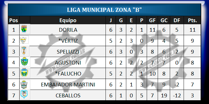 Se disputó en Vértiz  de manera parcial la sexta fecha de la zona "B" del torneo provincial municipal.  Fue la última del torneo Apertura y solo resta por  disputarse el encuentro suspendido entre Vértiz y Falucho.  Clasifica el primero de cada zona y en la "B" tienen posibilidades Dorila (actual puntero), Vértiz dos puntos abajo y un partido pendiente (depende de si mismo)  e incluso Falucho quien ganando por un resultado abultado alcazaría a Dorila en la punta y podría ser el uno con una buena diferencia de gol.
