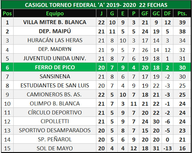 Arrancó la fecha del torneo Federal "A", por la zona 2 a puertas cerradas jugaron Juventud Unida Universitario de San Luis que igualó en cero con Villa Mitre de Bahía  Blanca y Círculo Deportivo que derrtó a Dep. Camioneros por dos a cero con los tantos convertidos por Nahuel Pájaro a los 30' y Enzo Astiz Rojas a los 36'.