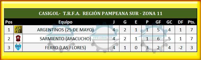 Nota: Clasificó Argentinos de 25 de mayo porque en los partidos entre ellos ganó 3 a 2  y empató 1 a 1.