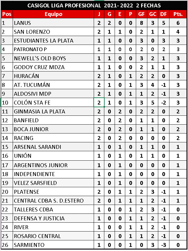 Se disputó la segunda jornada de la segunda fecha que comenzara en el día de ayer con el triunfo de At. Tucumán sobre Huracán y Aldosivi de MDP sobre Platense ambos por uno a cero. En el día de hoy comenzó muy temprano con el triunfo del puntero Lanús ante Colón por cuatro a uno, luego San Lorenzo derrotó uno a cero a Central Córdoba de Santiago del Estero, el empate de Rácing sin abrir el marcador y finalmente los pibes de Boca igualaron cero a cero con Banfield dando una gran muestra de carácter mostrando algunos valores muy interesantes incluso mereciendo algo más que el empate.