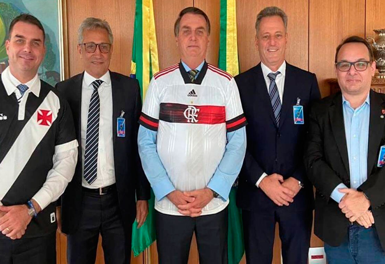 El presidente de Brasil Jair Bolsonaro se reunión con los titulares de Flamengo (actual campeón de América) y de Vasco ...