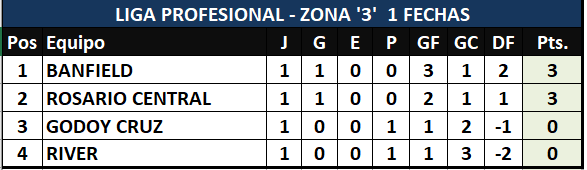 La segunda fecha de la Liga profesional completa es la siguiente