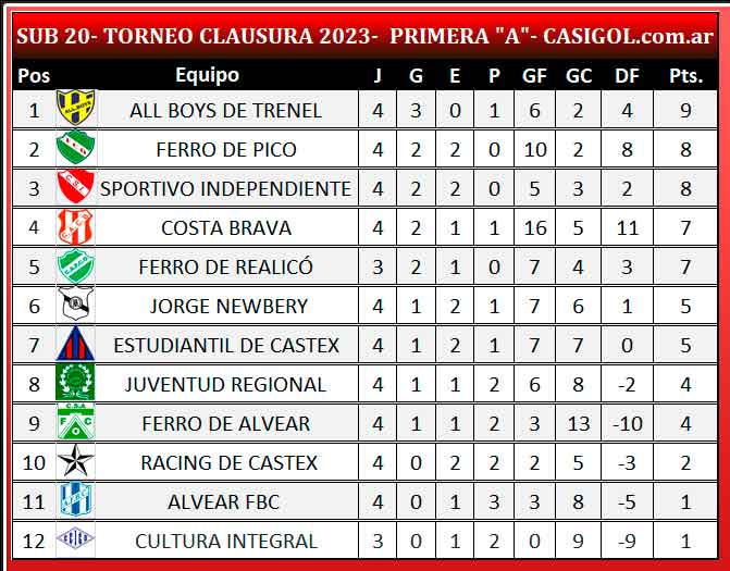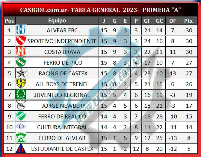 Se disputó la fecha 15 del torneo de Liga Pampeana en primera división "A" cuarta del clausura. Costa derrotó a Estudiantil, All Boys consiguió un importantísimo triunfo en Alvear ante el azul, Ferro con dos hombres menos derrotó a Sportivo Independiente, Rácing cómodo triunfo ante Ferro de Realicó, empate en Rancul entre Jorge Newbery y Ferro de Alvear y en Colonia Barón entre Cultura Integral y Juventud Regional en el clásico.