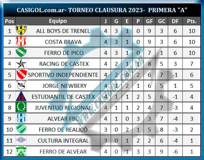 TABLA DE POSICIONES TORNEO CLAUSURA PRIMERA DIVISIÓN