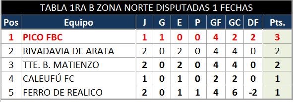 Se completó la segunda fecha del torneo de fútbol de Ascenso de Liga Pampeana, donde Dep. Ranqueles es líder en la zona Centro Sur y Pico FBC club a pesar de la fecha libre continúa liderando en la norte. Resta un partido sin resolverse por la primera fecha el encuentro suspendido entre At. Catriló y Cult. Argentino, suspendido por agresión a un juez de línea cuando igualaban cero a cero y que el tribunal de disciplinas deberá resolver si que hace con dichos puntos en juego.