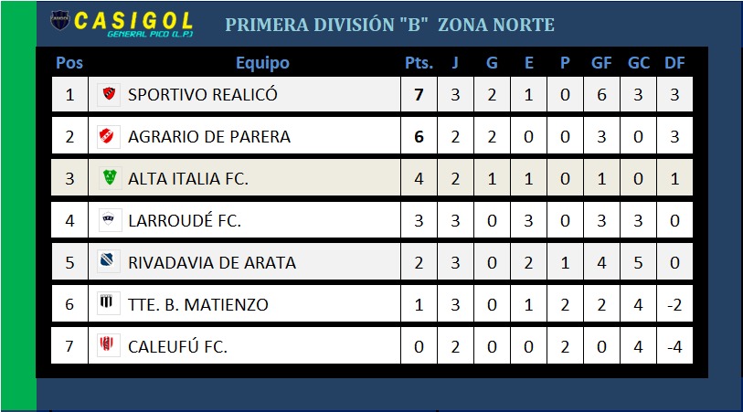 En la tarde de hoy se disputó la tercera fecha de la zona Norte , segunda de la Centro Sur,  en primera división "B" de Liga Pampeana de fútbol.