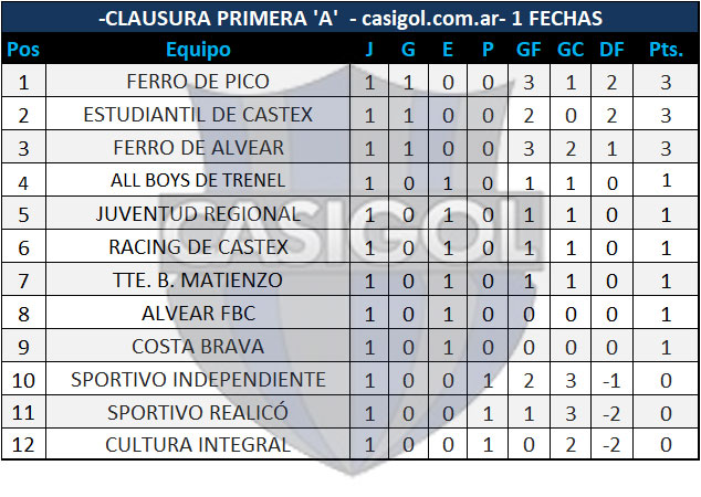 PRIMERA DIVISIÓN A: SE DISPUTÓ LA PRIMERA FECHA DEL TORNEO CLAUSURA