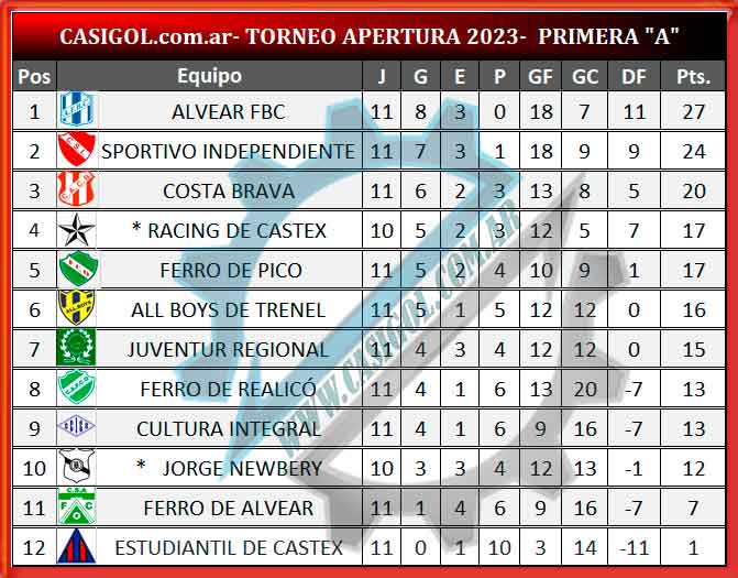 GOLEADORES: Gonzalo Parisi (Alv)- Gabriel Flores (Alv)- Alexis Mercado (2-FA)