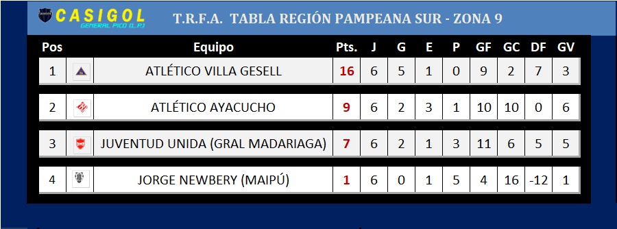 TRFA: PERDIÓ COSTA EN LA ÚLTIMA FECHA DE LA ZONA 10