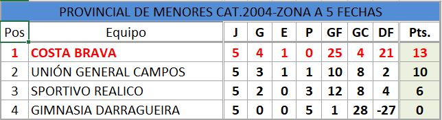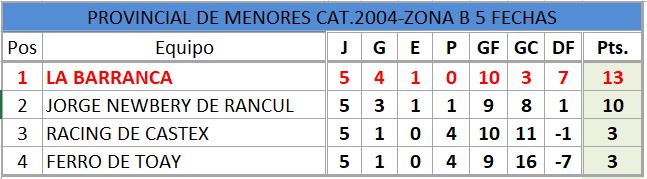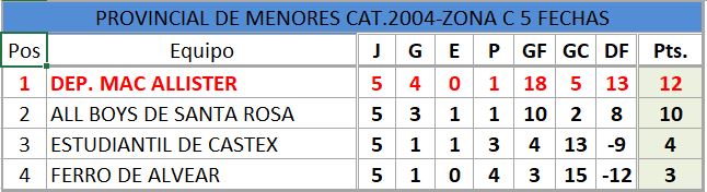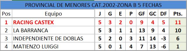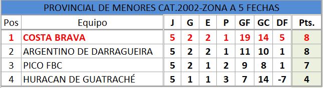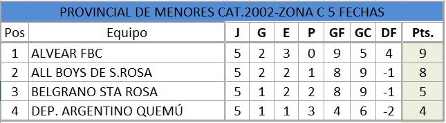 Se disputó la quinta fecha del torneo provincial de fútbol, de divisiones inferiores, estos fueron los resultados, así quedó la tabla de posiciones, con la siguiente próxima fecha..