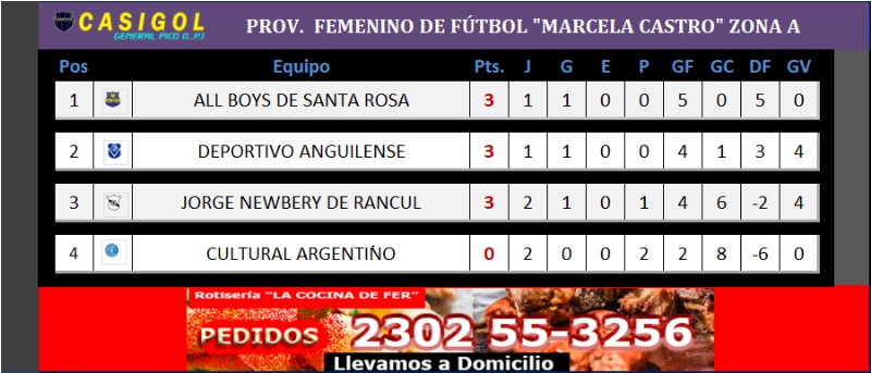 Recordamos que en la mañana de ayer en el "Volcán" de barrio pacífico se disputó el partido entre Cultural Argentino y Jorge Newbery de Rancul, siendo triunfo de la visita por cuatro a uno.