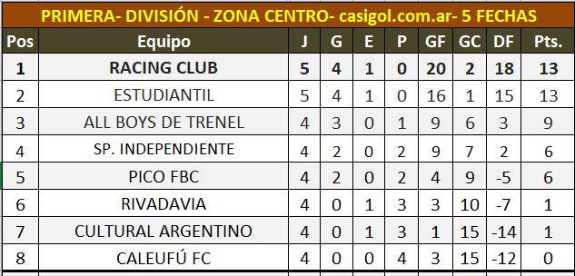 Se disputó el clásico de la localidad de Castex entre Racing Club y Estudiantil de Castex. El encuentro de la quinta fecha de Liga Pampeana entre los clásicos rivales lo comenzó ganando el tricolor con el tanto de Nicolás Ovando. Racing empujó y dominó el juego, le costó ante un Estudiantil que aguantaba el resultado, pero finalmente Renzo Frank puso el empate para el conjunto de Edgardo Leguizamón. Mucho se habló en la semana, si se jugaba si no se jugaba, si se trasladaba a otra localidad, finalmente se jugó en la fortaleza alba y repartieron puntos en un partido con la intensidad que caracteriza a los históricos clásicos de Eduardo Castex entre Racing Estudiantil, Estudiantil Racing.