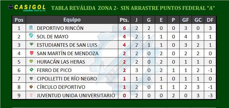 TABLA DE POSICIONES SIN ARRASTRE DE PUNTOS