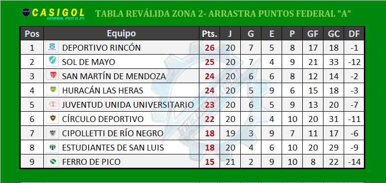 TABLA DE POSICIONES ARRASTRA PUNTOS
