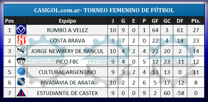 En la tarde de hoy en el "Semillero Celeste", se completó la undécima fecha del torneo femenino de fútbol de Liga Pampeana en primera división. Recordamos que el pasado domingo en "el Volcán" Rumbo a Velez había derrotado a Cultural Argentino y hoy Jorge Newbery derrotó a Rivadavia y Costa goleó a Estudiantil.