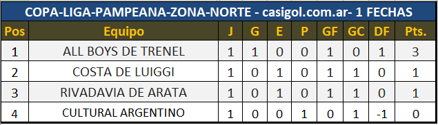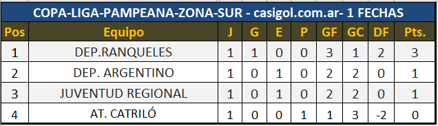 Se completó la primera fecha del torneo Copa Liga Pampeana, con el triunfo de Dep. Ranqueles ante Catriló y el empate en Arata entre Rivadavia y Costa de Luiggi.