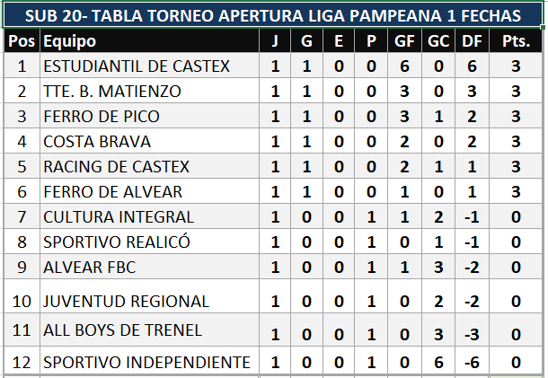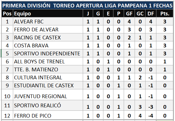 Se completó la primera fecha de Liga Pampeana con los tres partidos restantes, tras los adelantos que se disputaron el pasado Jueves.