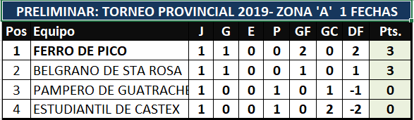 En el torneo provincial de Juveniles, se disputó la primera fecha del torneo provincial para las tres zonas en las cuales Ferro y Belgrano mandan en la A, en la B, son Argentino de Darragueira y Sportivo Realicó los líderes y por la zona C, All Boys de Trenel es puntero en soledad.