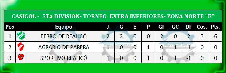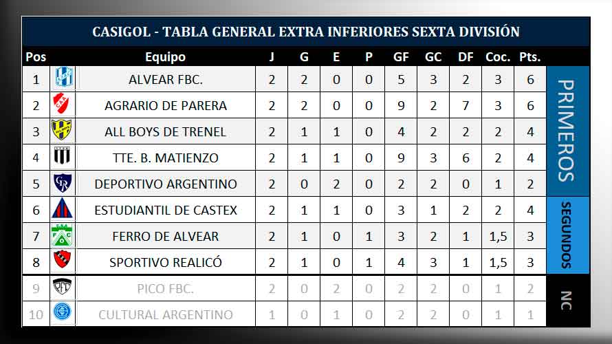 De esta forma finalizó la segunda fecha del torneo extra de divisiones inferiores. y a contiuación dejamos para ustedes los resultados de toda la fecha, las tablas de posiciones en las zonas y las tablar generales de las tres categorías.
