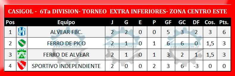 TABLA GENERAL SEXTA DIVISIÓN