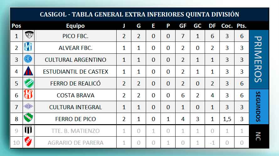 TABLA GENERAL QUINTA DIVISIÓN