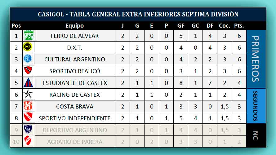 TABLA GENERAL SÉPTIMA DIVISIÓN